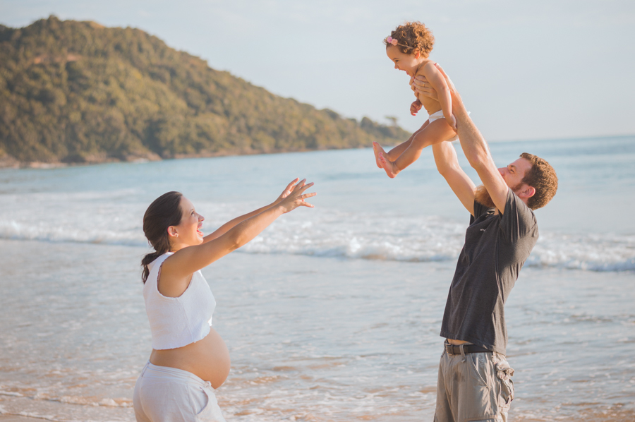 Eu já disse que sou apaixonada por essa família? Eu acompanho a Gaby e o Rapha desde a época de namoro, registrei o noivado deles, a chegada da Heleninha, o seu primeiro aninho e agora tive o privilégio de registrar nesse cenário lindo a família crescendo um pouquinho mais e esperando pelo mais novo membro da família! A Gaby queria fazer o ensaio na praia, fazia tempo que eu queria fazer um ensaio na praia também, conversando com ela descobri que ela ia passar o feriado de Carnaval em Balneário Camboriú, para onde eu também iria, coincidentemente! Não esperamos mais tempo e marcamos logo o nosso ensaio, bem cedinho para pegar a praia assim, vaziazinha e aproveitar para tirar muuitas fotos! Gabrielly e Raphael, além de clientes queridos vocês são uma família muito querida por mim, é sempre um prazer passar o dia com vocês e registrar cada pedacinho desse amor entre vocês que cada vez aumenta mais! <3 Que Deus abençoe muito a chegada do mais novo baby da família!!